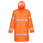 Tricot lined hood in collar with tear release fastening. Reflective detail and diagonal print to body and sleeve. Heavy duty 2-way zip with studded outer storm flap. Inner storm flap with chin guard. Adjustable shock cord hem. Contrast grey tricot lining. 3 zipped outer pockets. 2 inner pockets. Inner storm cuff. Stand up collar. Hangtag. Tough and hardwearing look. Ready to brand - cutaway label. EN ISO 20471:2013 Class 2; GO/RT 3279 Issue 8:2013 Class 2 (Orange).