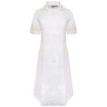 Princess seam detail. With epaulette loops. Round collar. Two breast pockets, with a waterproof lining in the left pocket. Two lower pockets, with a key loop in the right pocket. Concealed zip fastening, with press stud. Action back, front and back kick pleats for ease of movement. Self coloured trim to collar, sleeves and lower pockets.