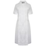 Princess seam detail. Round collar. Two breast pockets with a waterproof lining in the left pocket. Two lower pockets with a key loop in the right pocket. Concealed zip, with press stud. Action back with front and back kick pleats for ease of movement. 65 Degree wash. Availible in lengths Short (100cm), Regular (106cm), Tall (112cm).